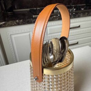 گلدان دکوری مدل هیرا طرح دسته چرمی 1119